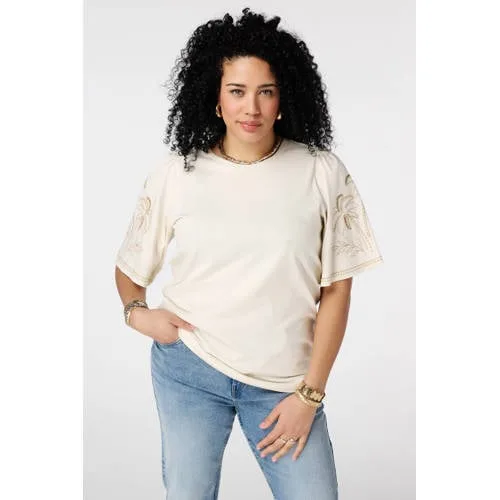 MS Mode T-shirt broderie beige