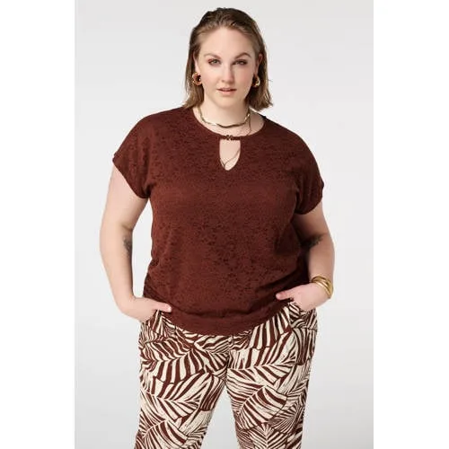 Geef je dagelijkse outfit een vrouwelijke update met deze middenbruine kanten top voor dames van MS Mode. De top uit de 'Daily' collectie heeft elegante kanten details en een subtiele cut-out in de hals, afgewerkt met een gouden bedel. De korte mouwen en rechtvallende pasvorm zorgen voor een ontspannen silhouet dat fijn aanvoelt en makkelijk combineert met je favoriete broek of rok.Verfijnde details voor elke dag Kanten inzetstukken voor een elegante, vrouwelijke uitstraling Cut-out bij de ronde hals met gouden bedel als stijlvol accent Rechtvallende pasvorm die soepel langs het lichaam valt Lengte van 70cm in maat L voor prettige bedekking Korte, rechte mouwen voor comfortabel draaggemak Bevat katoen, voelt zacht en soepel aan Effen middenbruine kleur, makkelijk te combineren met andere items Geschikt voor grote maten, afgestemd op een curvy silhouet Machinewas, waardoor onderhoud eenvoudig blijftMakkelijk te stylen, van werk tot weekendDeze top past goed bij een nette broek voor een werkdag, of met een rok en laarsjes voor een meer geklede look. In combinatie met een denim of zwarte broek creëer je snel een alledaagse outfit die toch verzorgd oogt.MS Mode: stijlvol en doordacht ontworpenMS Mode richt zich op modieuze kleding voor grotere maten, met aandacht voor pasvorm en draagcomfort. Deze top sluit daar naadloos op aan, zodat jij je prettig voelt in wat je draagt, op elk moment van de dag.Een stijlvolle basis voor je garderobe die je het hele seizoen door blijft dragen.