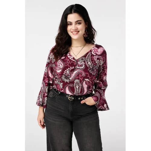 MS Mode top met paisley print donkerrood