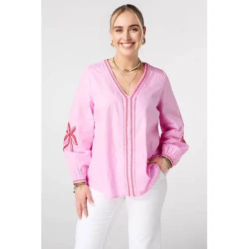 Deze luchtige katoenen dames top met broderie van MS Mode is een praktische basis voor warme dagen. De roze/rode kleur geeft een zomerse uitstraling en de A-line pasvorm valt losjes langs je lichaam. Dankzij het materiaal van 100% katoen voelt de stof zacht aan, ook als je de top de hele dag draagt.Details die het verschil maken Gemaakt van 100% katoen, voor een ademend en zacht draaggevoel A-line pasvorm die soepel langs de heupen valt Pofmouwen met broderie details voor een vrouwelijke uitstraling V-hals die het decolleté subtiel accentueert Lengte van 72cm in maat 46, valt over de heupen Effen design in roze/rood, goed te combineren met jeans, pantalon of rok Lange mouwen, passend bij zomerse dagen waarop je net iets meer bedekking wilt Eenvoudig in onderhoud dankzij machinewasVoor dagelijkse zomerse combinatiesDeze top komt uit de Daily collectie en sluit goed aan bij je dagelijkse garderobe. Combineer met een lichte jeans voor een casual combinatie of draag de top op een nette broek naar je werk. De effen kleur en rustige details maken het geschikt voor verschillende outfits die je snel samenstelt.MS Mode: stijl in grote matenMS Mode richt zich op modieuze kleding in grote maten met aandacht voor pasvorm en draagcomfort. De collecties zijn afgestemd op vormen en maten die extra ondersteuning en ruimte vragen, zodat je kleding prettig zit en mooi valt. Zo kies je voor toegankelijke mode waar je elke dag op kunt rekenen.Deze zomerse top combineert een comfortabel draaggevoel met subtiele broderie details.