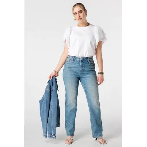 Deze witte katoenen top met vlindermouwen van MS Mode is een fijne basic met een opvallend detail. Gemaakt van 100% katoen voelt de stof soepel en luchtig aan, ideaal voor warme dagen. De rechtvallende pasvorm en lengte van 65cm in maat L zorgen voor een ontspannen silhouet dat mooi langs het lichaam valt.Speelse details in een dagelijkse basic Gemaakt van 100% katoen, prettig om te dragen in het zomerseizoen Vlindermouwen met dubbele laag voor een luchtig en vrouwelijk effect Subtiele glittersteentjes en studs op de mouwen voor een lichte glans Rechtvallende pasvorm die comfortabel zit en makkelijk combineert Effen witte kleur die goed past bij broeken, rokken en jeans Korte kapmouwen en klassieke kraag voor een verzorgde uitstraling Geschikt voor het grote maten assortiment Machinewas, praktisch in onderhoudStyling voor elke dagDeze top past goed in je dagelijkse garderobe. Combineer met een jeans en sneakers voor een casual look, of draag hem op een zwarte broek met sandalen voor een wat gekledere combinatie. Door de rustige basis en opvallende mouwen heeft je outfit met weinig moeite iets speciaals.MS Mode, gericht op pasvormMS Mode richt zich op kleding waarin vrouwen met een maatje meer zich prettig kunnen voelen. De collecties zijn afgestemd op rondingen en bieden pasvormen die rekening houden met comfort en draaggemak. Deze top sluit daarbij aan met een rechtvallend model en doordachte details.Een zomerse top die je eenvoudig aantrekt wanneer je iets luchtigs wilt met net wat extra aandacht voor de mouwen.