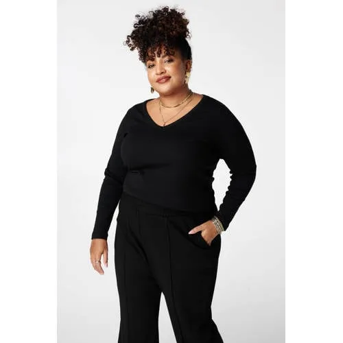 Deze aansluitende MS Mode geribde top is een praktische basic voor elke dag. De subtiele ribstructuur volgt je lijnen, terwijl de V-hals en lange mouwen zorgen voor een rustige, moderne uitstraling. Gemaakt van zacht katoen met elastaan voelt de stof soepel aan op de huid en blijft de top mooi in vorm gedurende de dag.Praktische details en fijne pasvorm Aansluitende pasvorm die het lichaam volgt zonder strak aan te voelen Geribde stof voor een rustig, maar toch levendig oppervlak Lange, rechte mouwen die soepel om de armen vallen Lengte van circa 70 cm in maat L, biedt wat extra bedekking Gemaakt van 94% katoen en zes procent elastaan voor zachte rek Effen uitvoering, makkelijk te combineren met allerlei prints en kleuren Geschikt voor machinewas, passend bij dagelijks gebruikEindeloos combineren in je dagelijkse looksDeze top past eenvoudig onder een blazer, vest of spijkerjack, maar kan ook solo op een jeans of nette broek. De effen kleur maakt het een praktische basis voor kantoor, thuis of een casual afspraak. Door de aansluitende vorm is de top ook geschikt om onder laagjes te dragen zonder extra volume.MS Mode als vertrouwde keuzeMS Mode staat voor toegankelijke damesmode met aandacht voor pasvorm en draaggemak. De collecties bieden moderne basics en items die je gemakkelijk met elkaar combineert, zodat je snel een complete outfit samenstelt waar je op kunt vertrouwen.Een veelzijdige basic die rustig oogt en je garderobe op een praktische manier aanvult.