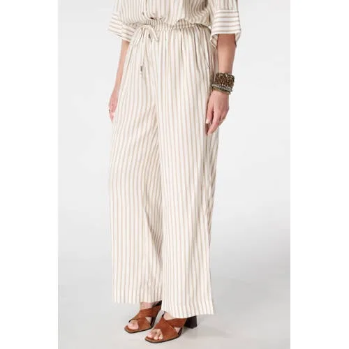 MS Mode wide leg high waist gestreepte broek ecru Prijzen