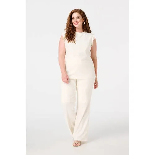 MS Mode wide leg regular waist broek ecru broderie
