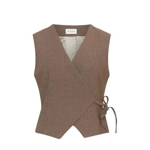 Til je voorjaarsoutfits naar een hoger niveau met het MSCH Copenhagen Darina gilet in warm bruin. Dit korte, mouwloze gilet heeft de uitstraling van een blazer, maar dan in een luchtige en moderne vorm. De V-hals en striksluiting in de taille zorgen voor een elegante, open look die je makkelijk aanpast aan jouw silhouet.Details die je look verfijnen Kort gilet in blazerstijl, ideaal om je taille te accentueren V-hals die mooi valt over een top, blouse of jurkje Mouwloos ontwerp, perfect voor gelaagde outfits in de lente Striksluiting in de taille voor een vrouwelijke, verstelbare pasvorm Effen bruine kleur die rustig oogt en makkelijk combineert Gemaakt met viscose en elastaan voor een soepele stof met lichte stretch Glad voorpand zonder zakken voor een strakke, moderne uitstralingGilet voor veelzijdige lentecombinatiesDit bruine gilet draag je net zo makkelijk boven een basic T-shirt als over een nette blouse. Combineer het met een high waist jeans voor een relaxte daglook of met een rechte pantalon voor een meer geklede stijl. Door de striksluiting bepaal jij hoe los of aangesloten het gilet valt.De stijl van MSCH CopenhagenMSCH Copenhagen staat bekend om tijdloze ontwerpen met een moderne, Scandinavische uitstraling. De collecties combineren draagbare pasvormen met rustige kleuren en subtiele details. Zo kun je elk seizoen opnieuw vertrouwen op items die goed aanvoelen en lang in je garderobe blijven.Een gilet dat je garderobe verrijkt met een moderne, vrouwelijke laag die je het hele seizoen door blijft pakken.