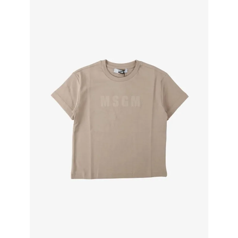 Het MSGM Junior Light Interlock T-shirt in de kleur Stone heeft een toon op toon logo. Combineer het shirt met de bijpassende MSGM Junior korte short.