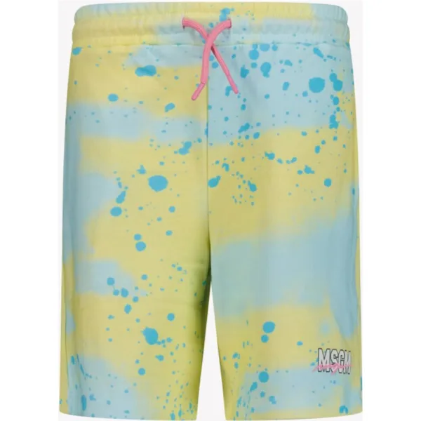 S5MSJGBE230 140 MULTICOLOR SS25short met spuitverfeffectpastelgeelelastische tailleband met trekkoordtwee insteekzakken aan de zijkantopgestikte zak aan de achterkantlogoprint op de voorkantMSGM Kids