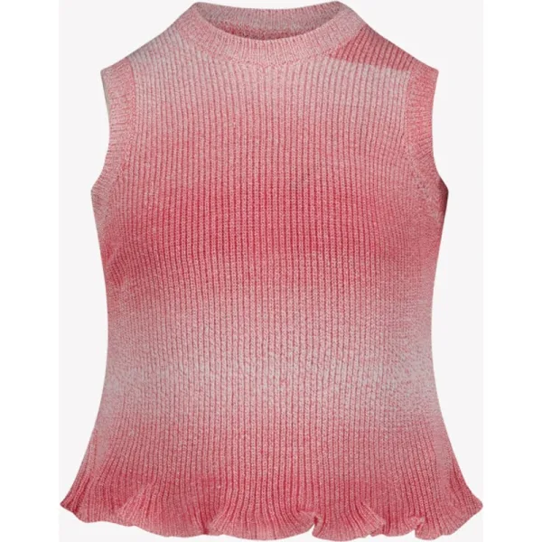 S5MSJGTA086MS003 MS003 ROSA SS25katoenen toprozegeribd breiselronde halsmouwlooslogopatch op de achterkantMSGM Kids