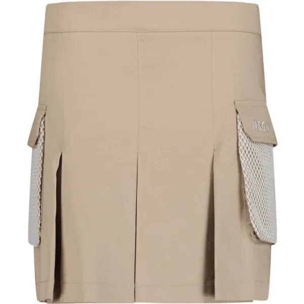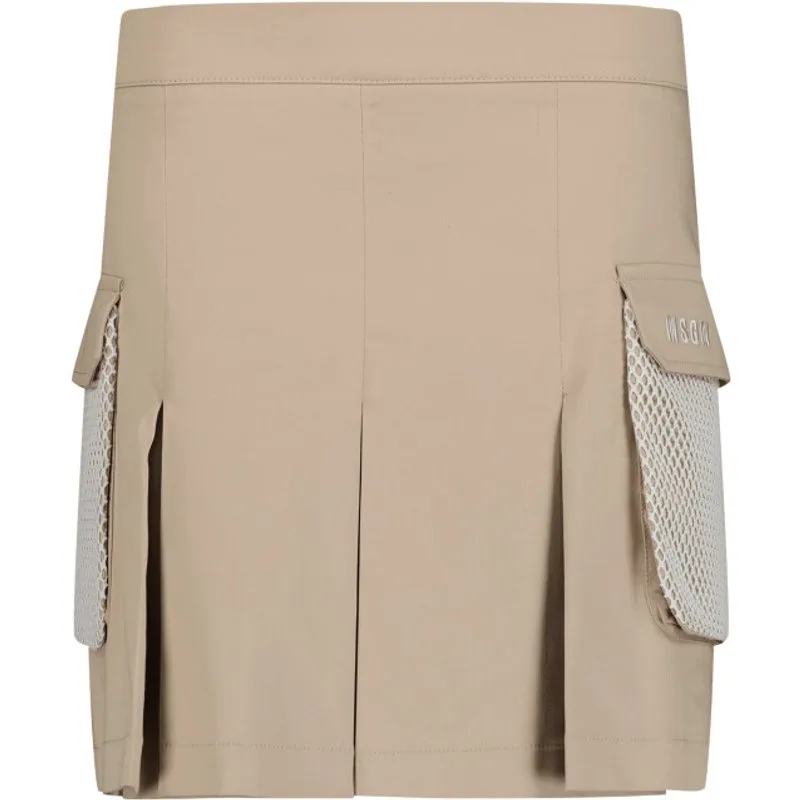 S4MSJGSK07515 SS24geplooide minirok katoen mix geborduurd logo aan de zijkant twee zijzakken met klep en mesh details geplooide zoom verborgen ritssluiting aan de achterkant MSGM Kids