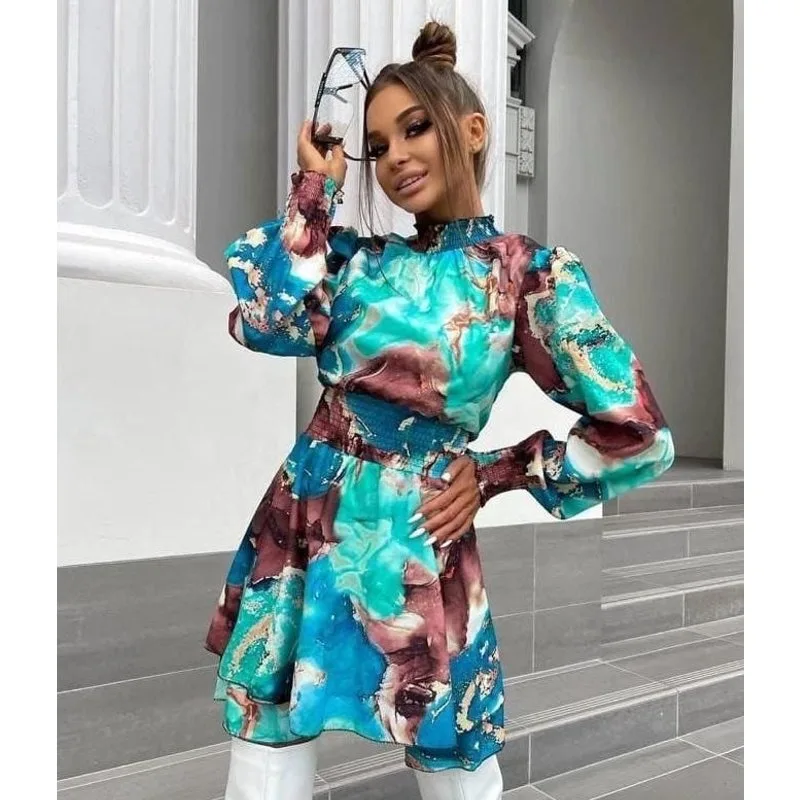 Halflange Luxe Dames Jurk - Halflange Luxe Dames Jurk Heeft lange mouwen Heeft heeft een ronde-hals en ruches. Heeft elastische taille en een aangesloten fit