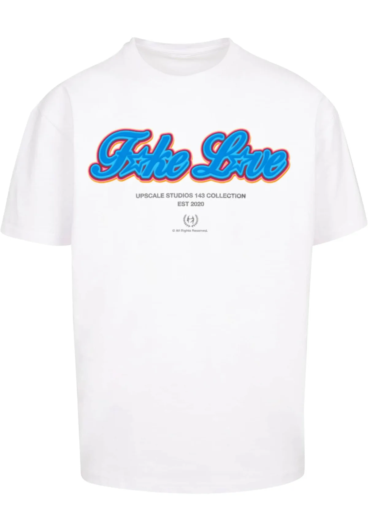 MT Upscale Shirt ‘F*ke L*ve’ blauw / grijs / oranje / wit Prijzen