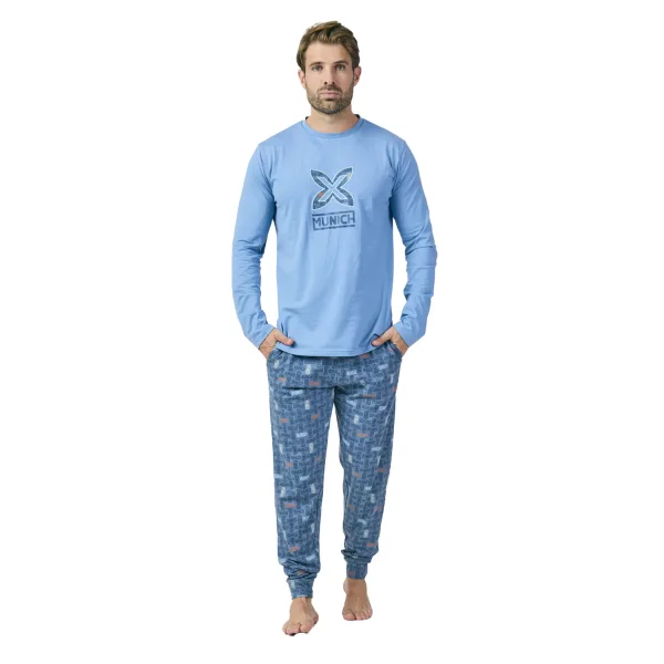 De winterpyjama voor heren van Munich is gemaakt van zacht, ademend katoen en polyester, perfect voor je nachten. Eersteklas herenpyjama!nn Herenpyjama met lange mouwen, ideaal om thuis in te loungen of te ontspannen in maximaal comfort. Het moderne en geraffineerde ontwerp past perfect bij het mannelijke figuur en verbetert het silhouet met een ontspannen stijl.nn De pyjamaset bevat een T-shirt met lange mouwen en ronde hals, wat zorgt voor een moderne en veelzijdige stijl, ideaal voor wie op zoek is naar comfort zonder stijl op te offeren.nn De lange broek heeft een losse pasvorm, een verstelbare elastische tailleband met trekkoorden en enkelboorden voor extra comfort. De broek heeft ook praktische zijzakken, perfect om kleine spullen in mee te nemen of gewoon een functioneel tintje aan het ontwerp te geven.nn Alle pyjama's zijn gemaakt van zachte, ademende materialen, perfect voor elk moment van het jaar en zorgen voor frisheid en comfort terwijl je uitrust.n Samenstelling: 60% Katoen, 40% Polyestern Onderhoud:nWassen op maximum temperatuur 30º.n Kort centrifugeren.n Geen bleekmiddel gebruiken.n Geen droger gebruiken.n Maximaal strijken op 110º.n Niet chemisch reinigen.