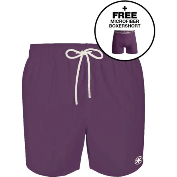 Men Swimshort Solid Materiaal: 100% Polyester Wasinstructies: Wassen op 30 graden,Niet in de droger,Strijken op matig warme stand (2 stippen) Kleur: Paars