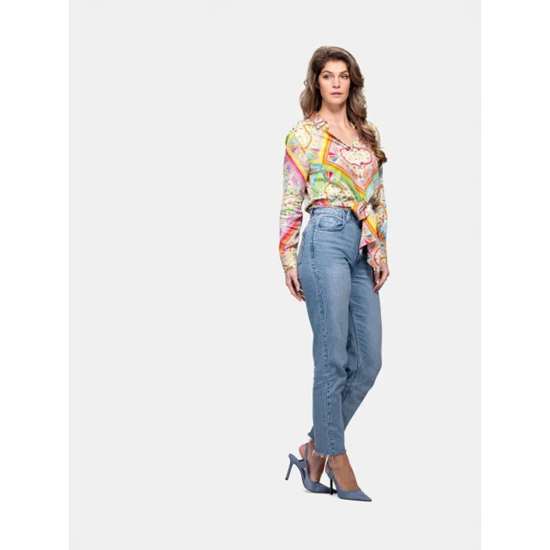 MUCHO GUSTO® Blouse Antwerp Multicolor Ocean Patchwork. Verhoog je garderobe met de Antwerp Blouse van MUCHO GUSTO, een perfecte mix van modern chic en comfort. Deze trendy blouse is gemaakt van luxe viscose, waardoor hij heerlijk aanvoelt op je huid. De voorkant is voorzien van een smaakvolle knoopsluiting, die een vleugje verfijning toevoegt aan de blouse. Het pièce de résistance is het charmante strikdetail aan de zoom, voor een speels en vrouwelijk accent. Omarm een fashion-forward look die moeiteloos overgaat van dag naar nacht. Wat de Antwerp Blouse echt uniek maakt, is het betoverende patchwork van de oceaan. Geïnspireerd door de steeds veranderende schoonheid van de zee, voegt dit unieke kenmerk een onderscheidend en opvallend element toe aan je ensemble. Dutch design Materiaal: 52% Zijde 40% Viscose 8% EL Normale pasvorm Veelkleurig Het model is 179 cm lang en draagt maat S