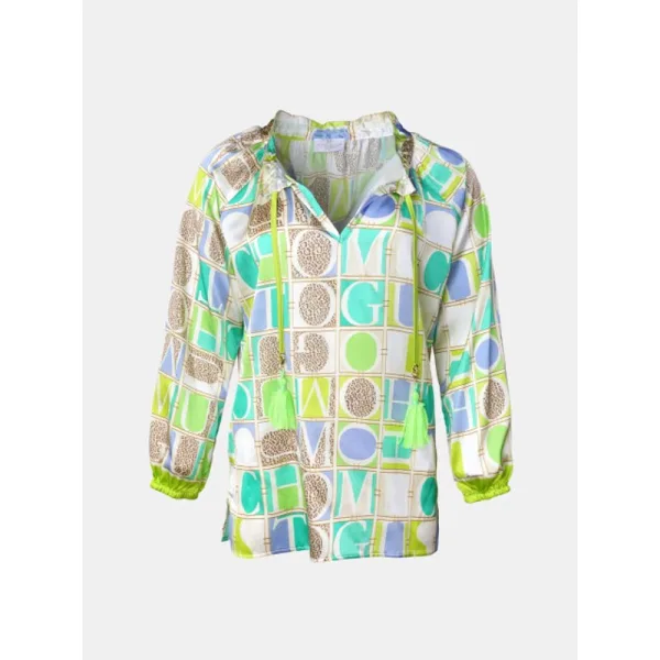 PRODUCTDETAILS MUCHO GUSTO® Blouse Milano Luipaard MG Groen Blauw De MUCHO GUSTO® Blouse Milano Luipaard MG Groen Blauw is een levendige fusie van speelse luxe en moderne flair. Deze opvallende blouse heeft een patchworkprint met de iconische initialen van het merk “MUCHO GUSTO®” in een kleurrijk raster van fris limoengroen, zacht blauw, pastel lila en turquoise. Verspreid over de blouse zitten beige luipaardvlekken en afgeronde geometrische accenten, wat de blouse een levendig, artistiek ritme geeft. Het ontwerp biedt een verfrissende, bijna pop-art geïnspireerde kijk op mode, terwijl het zorgvuldig uitgebalanceerde kleurenpalet het chic en draagbaar houdt. Deze blouse is gemaakt van een eersteklas zijdemix met een vleugje stretch, valt mooi om het lichaam en biedt de hele dag comfort en elegantie. De Milano blouse is ideaal voor modebewuste vrouwen die houden van gedurfde prints met een verfijnde touch en is prachtig te combineren met neutrale of felle stukken, afhankelijk van je stemming en stylingbehoeften. Het is een echt statement stuk, met trots gemaakt in Nederland. Nederlands ontwerp Materiaal: 97% zijde, 3% elastaan Beschikbare maten: XS, S, M, L, XL, XXL, 3XL Kleur: Multicolor print in groen, blauw, lila en beige luipaard met MUCHO GUSTO® Letter Grid