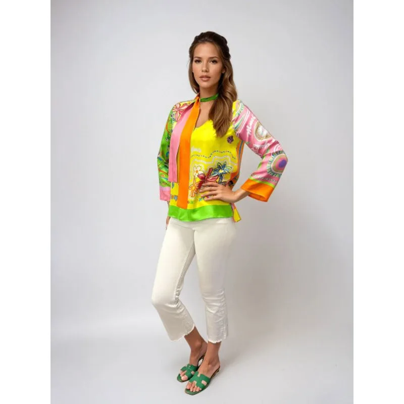 PRODUCTDETAILS MUCHO GUSTO® Blouse Roma Multicolor Bloemen Patchwork De MUCHO GUSTO® Blouse Roma Multicolor Bloemen Patchwork is een elegante zijden blouse met een artistieke en tijdloze uitstraling. Het ontwerp voelt verfijnd en in balans, terwijl de rijke kleuren zorgen voor karakter. Daardoor is deze blouse opvallend, maar toch makkelijk te dragen. De blouse is gemaakt van 100% zijde en voelt licht en zacht aan op de huid. Bovendien valt de stof soepel langs het lichaam, wat zorgt voor een vrouwelijke en flatterende pasvorm. De print is geïnspireerd op klassieke sjaalontwerpen en geeft de blouse een luxe uitstraling. Daarnaast biedt de comfortabele pasvorm bewegingsvrijheid gedurende de hele dag. Je combineert deze blouse moeiteloos met een nette broek of met een jeans. Door het tijdloze karakter draag je de Blouse Roma Art Essence zowel dagelijks als bij bijzondere gelegenheden. Deze blouse laat perfect zien waar MUCHO GUSTO® voor staat: creativiteit, elegantie en Dutch Design. Dutch Design Materiaal: 100% zijde Beschikbare maten: XS, S, M, L, XL, XXL, 3XL Kleur: Multicolor