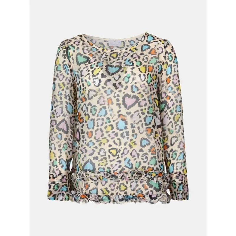 Specificaties: Mucho Gusto Blouse torre di palme beige met multicolor luipaardprint