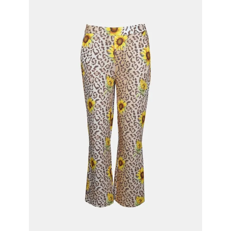 Mucho Gusto Broek lesbos luipaardprint met zonnebloemen