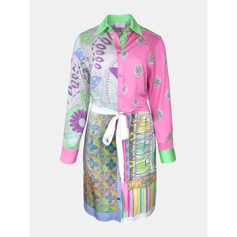 Mucho Gusto Jurk francis bay short roze met groen patchwork
