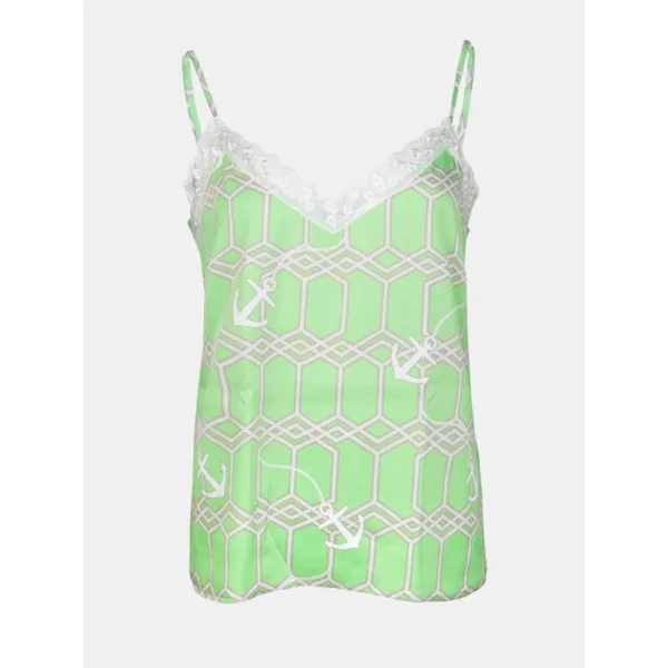 MUCHO GUSTO® Slip Top Groen Ankertjes. Deze opvallende top heeft een felle groene print met ankers, verstelbare bandjes voor een persoonlijke pasvorm en een chique kanten randje. Verhoog je look met dit veelzijdige stuk dat mode en functionaliteit combineert. Maak een statement met deze essentiële garderobe - waar levendige prints en kleurrijke details samenkomen om je unieke stijl uit te drukken.