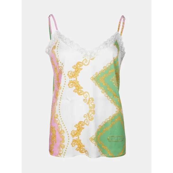 MUCHO GUSTO® Slip Top Ecru met Baroque Print. Deze opvallende top heeft een baroque print roze en groene details, verstelbare bandjes voor een persoonlijke pasvorm en een chique kanten randje. Verhoog je look met dit veelzijdige stuk dat mode en functionaliteit combineert. Maak een statement met deze essentiële garderobe - waar levendige prints en kleurrijke details samenkomen om je unieke stijl uit te drukken.
