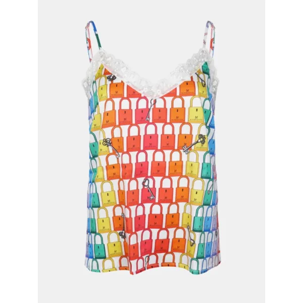 MUCHO GUSTO® Slip Top Multicolor Slotjes. Deze opvallende top heeft een kleurrijke slotjes print, verstelbare bandjes voor een persoonlijke pasvorm en een chique kanten randje. Verhoog je look met dit veelzijdige stuk dat mode en functionaliteit combineert. Maak een statement met deze essentiële garderobe - waar levendige prints en kleurrijke details samenkomen om je unieke stijl uit te drukken.