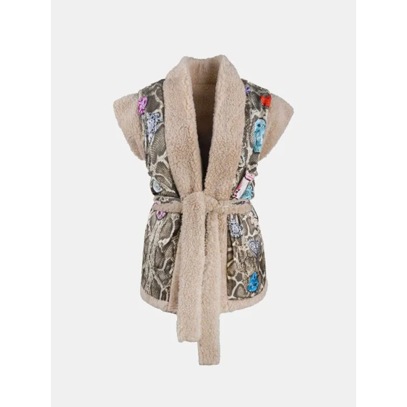 Mucho Gusto ® teddy gilet reversible beige met snake