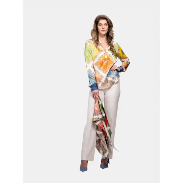 Specificaties: Mucho Gusto Zijden blouse monza ocean paisley patchwork