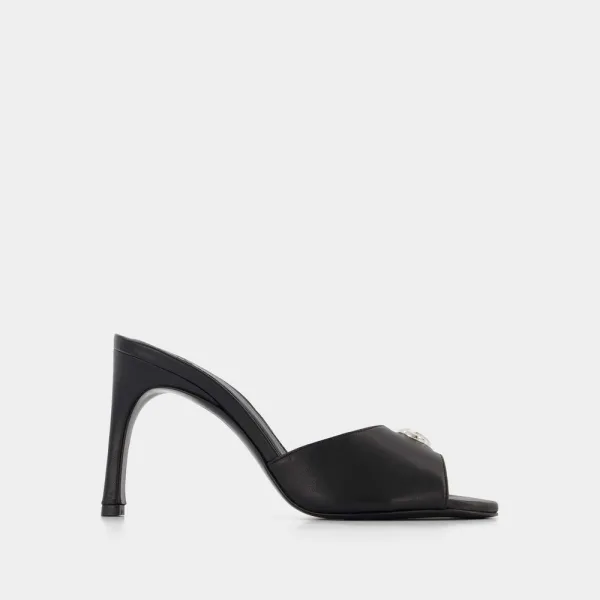 Draag deze zwarte muiltjes Coperni voor elke gelegenheid. Ze zijn tijdloos en passen met hun zilveren logo bij al je looks. Hakhoogte: 6 cm. Kleuren: Zwart. Hoofdmateriaal: glad kalfsleer. Materiaal zool: synthetisch. Materiaal voering: leer. Sluiting: eenvoudig aan te trekken. Teenvorm: rond open. Pasvorm: true to size - Maatvoering: Europees.