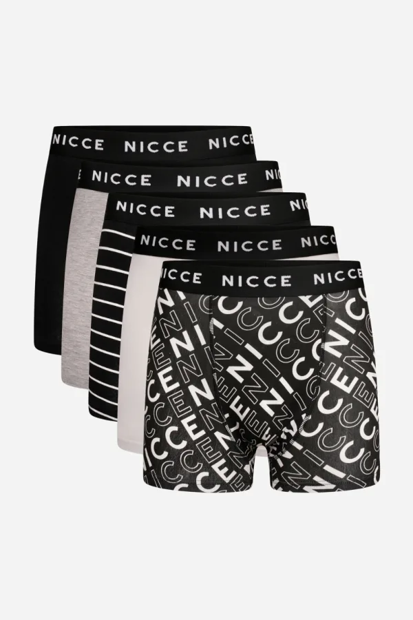 Voeg variatie en stijl toe aan je ondergoedcollectie met dit 5-pack boxershorts van NICCE. Gemaakt van een katoenrijke stof met extra rek, biedt elke paar een zachte, ademende uitstraling en een ondersteunende pasvorm voor comfortabel dragen de hele dag door. De set bevat een mix van effen, gestreepte en algehele logoontwerpen, allemaal voorzien van de kenmerkende NICCE logo-elastiek voor een gedurfde, moderne uitstraling. Een veelzijdige multipack van uitstekende waarde die comfort, kwaliteit en opvallende mer stijl combineert voor dagelijks gebruik.