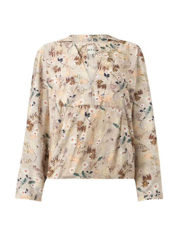 Munthe Blouse ‘BABETTE’ beige / bruin / spar / offwhite