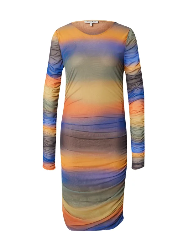 Design: Gevoerde zoom/rand, Rechte zoom; Materiaal: Gerecycled materiaal; Halstype: Ronde hals; Motief: Kleurverloop; Details: Gedrapeerd; Extra's: All-over patroon, Lichte stof; Lengte: Knielengte; Pasvorm: Slanke pasvorm; Armlengte: Lange mouw