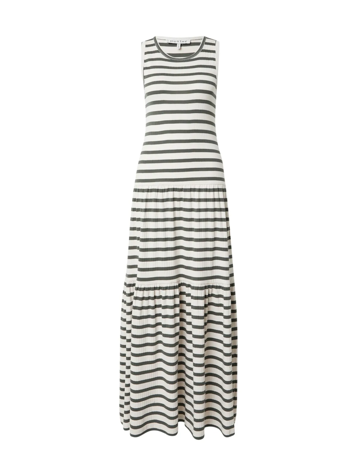 Design: Gevoerde zoom/rand, Geribbeld gebreid; Materiaal: Jersey; Halstype: Ronde hals; Motief: Gestreept; Soort bandjes: Brede bandjes; Details: Volant, Gedrapeerd; Extra's: All-over patroon, Voelt zacht aan; Lengte: Lang/maxi; Snit: Getailleerd; Pasvorm: Normale pasvorm; Armlengte: Mouwloos