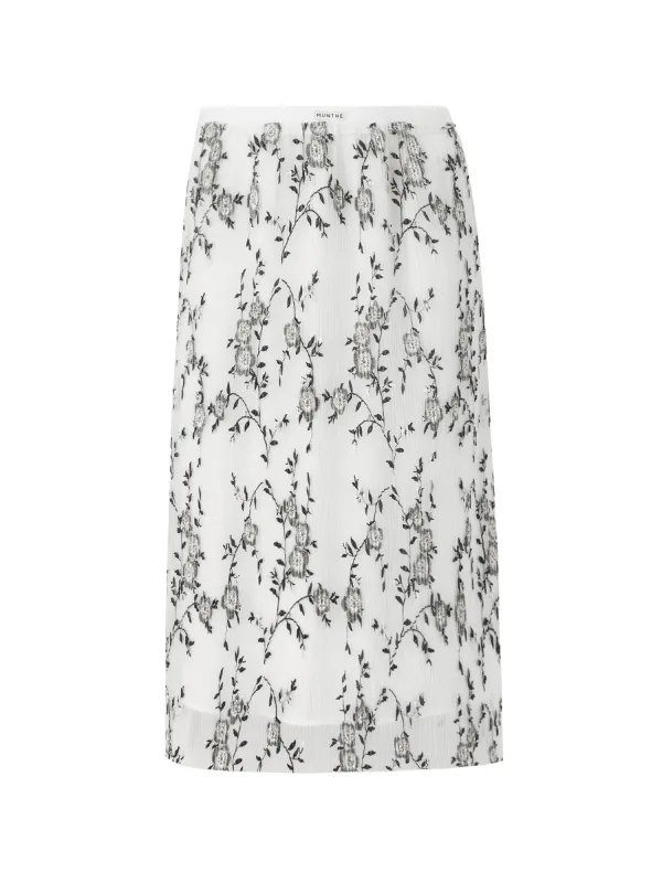 Design: Elastische taille/zoom, Rechte zoom, Met onderrok; Materiaal: Tule; Motief: Bloemenprint; Rokvorm: A-lijn rok; Details: Borduursels, Gedrapeerd, Plissé; Extra's: Licht transparant, All-over patroon, Gladde stof; Lengte: 3/4 lengte; Pasvorm: Normale pasvorm