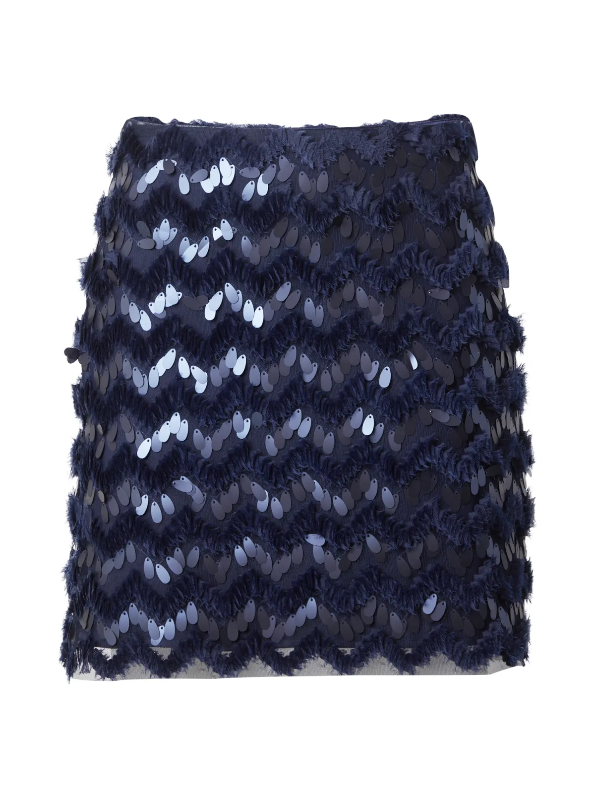 Design: Rechte zoom, Ritszakken aan de zijkant; Type sluiting: Ritssluiting; Motief: Effen; Rokvorm: Minirok; Details: Franjes, Pailletten; Extra's: Licht transparant, Op staal naden, Met textuur; Lengte: Kort/mini; Pasvorm: Normale pasvorm