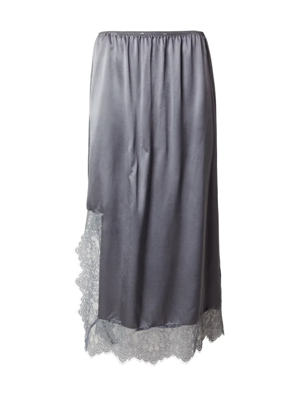 Design: Beenopening, Geschulpte zoom; Materiaal: Satijn; Motief: Effen; Rokvorm: A-lijn rok; Details: Kant, Gedrapeerd; Extra's: Op staal naden, Gladde stof; Lengte: 3/4 lengte; Pasvorm: Normale pasvorm