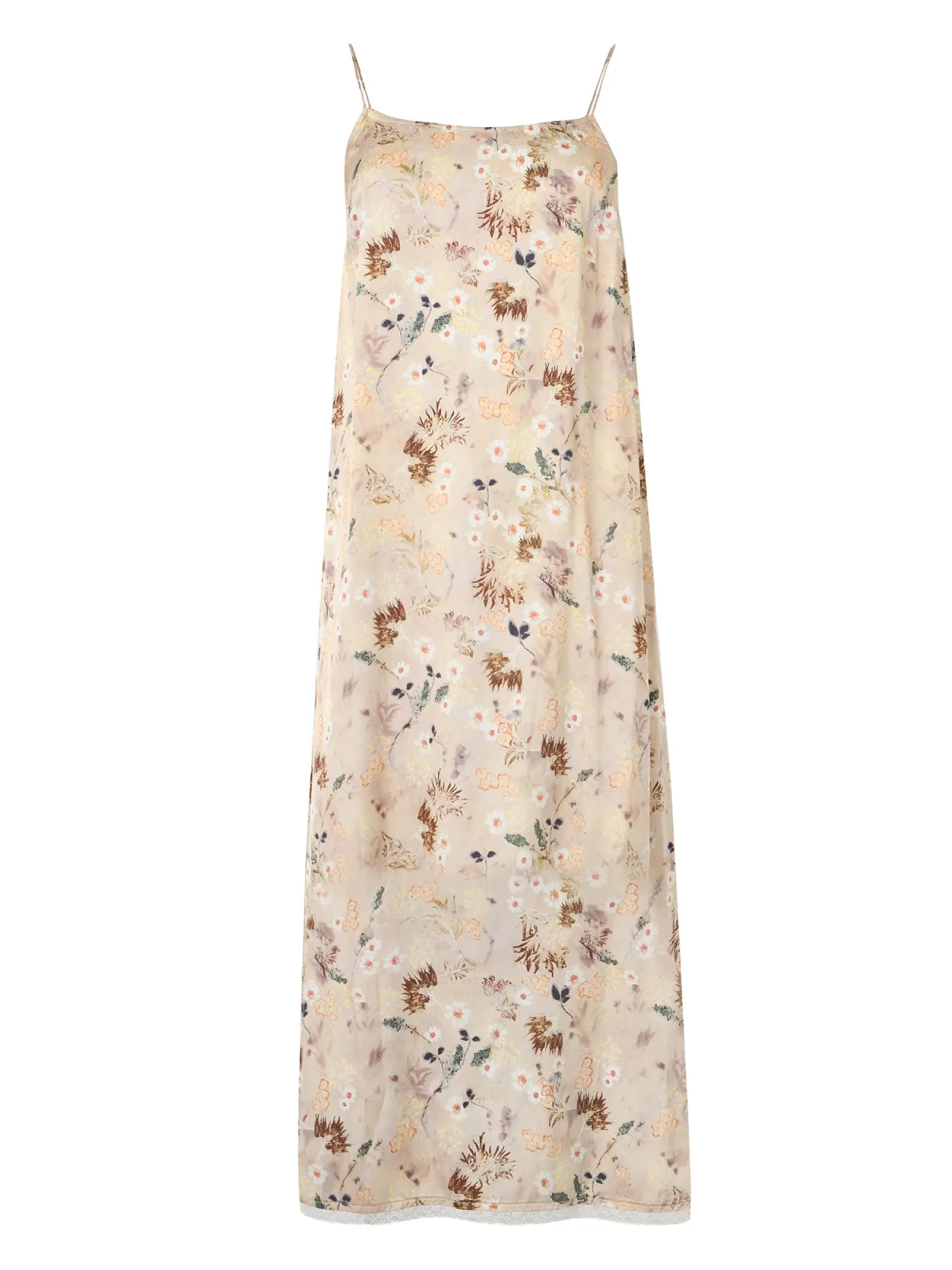 Design: Ingelegde zoom/rand; Materiaal: Viscose; Halstype: Carréhals; Motief: Bloemenprint; Soort bandjes: Spaghettibandjes; Details: Kant; Extra's: All-over patroon, Gladde stof; Lengte: 3/4 lengte; Pasvorm: Normale pasvorm; Armlengte: Mouwloos