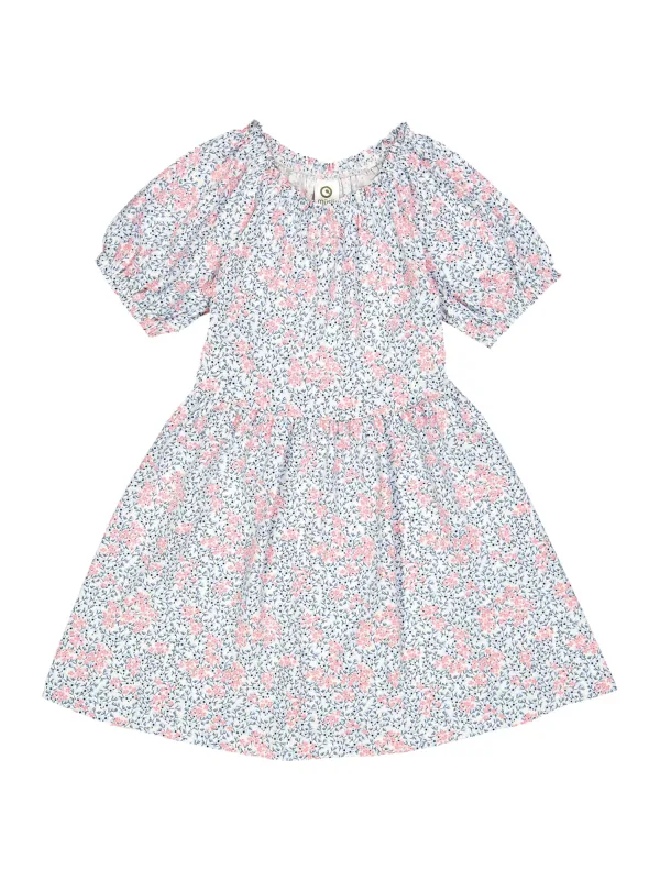 Design: Pofmouwen; Materiaal: Jersey; Halstype: Ronde hals; Motief: Bloemenprint; Details: Gedrapeerd; Extra's: All-over patroon; Lengte: Knielengte; Pasvorm: Losse pasvorm; Armlengte: Kwartmouw