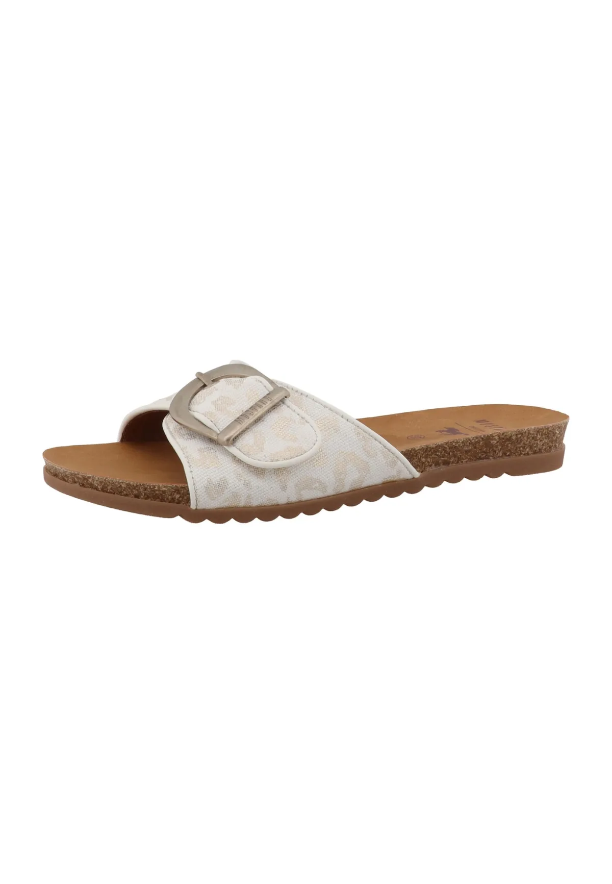 Design: Ingelegde zoom/rand, Zool van kurk; Type sluiting: Slip; Materiaal: Imitatieleder; Motief: Dierenprint; Materiaal: Imitatieleer; Schoenneus: Open toe; Extra's: All-over patroon, Flexibele zool; Hakhoogte: Platte hak (0-3 cm); Pasvorm van de schoenen: Normaal