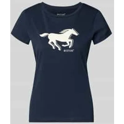 dames T-shirt van Mustang;puur katoen;regular fit;Model 'Loa';Logo-print;Met korte mouwen design;ronde hals;ruglengte bij maat S: 60 cm