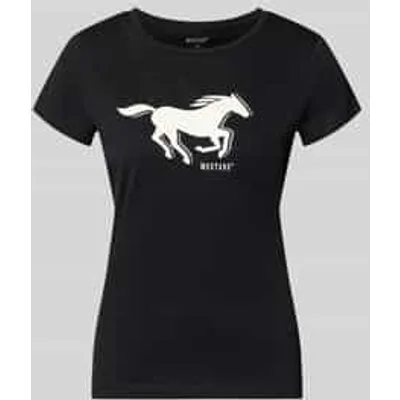 dames T-shirt van Mustang;puur katoen;regular fit;Model 'Loa';Logo-print;Met korte mouwen design;ronde hals;ruglengte bij maat S: 60 cm