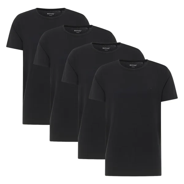 MUSTANG basic herenoverhemd in een verpakking van vier stuks. Casual T-shirt met ronde hals en rechte zoom. Gemaakt van een mix van duurzaam biologisch katoen en stretch.