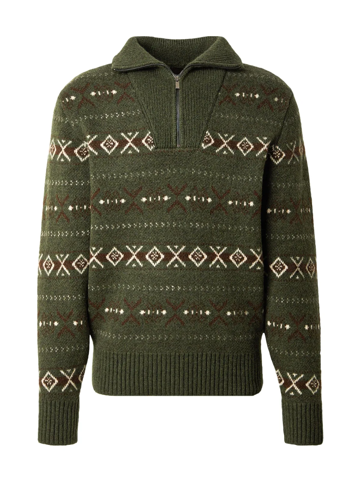 Design: Geribbelde kraag, Rechte zoom, Geribd ceintuurtje, Halve rits; Materiaal: Knitwear; Halstype: Schipperskraag; Motief: Winterse print; Extra's: All-over patroon, Fully fashioned, Voelt zacht aan; Pasvorm: Normale pasvorm; Armlengte: Lange mouw