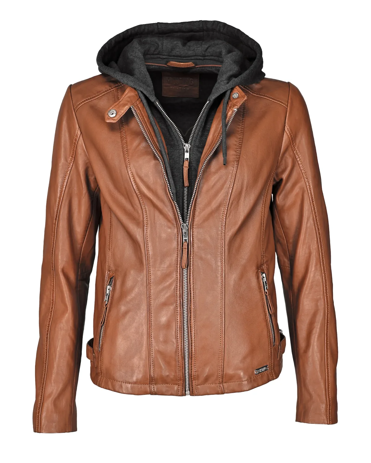 Design: Afneembare capuchon, Capuchon met trekkoord, Staande kraag, Binnenzak, Ritszakken aan de zijkant, Siernaad; Type jas: Bikerjack; Voering: Licht gevoerd; Materiaal: Leer; Motief: Effen; Extra's: Label plaatje, Lamsleer, Hoge weerstand; Pasvorm: Normale pasvorm