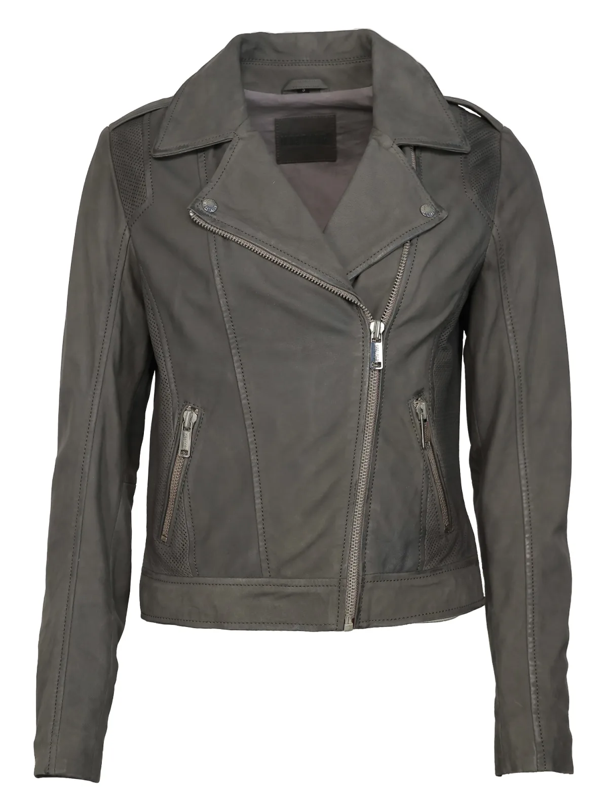 Design: Ritszakken aan de zijkant; Type sluiting: Ritssluiting; Type jas: Bikerjack; Voering: Licht gevoerd; Materiaal: Leer; Motief: Effen; Pasvorm: Normale pasvorm