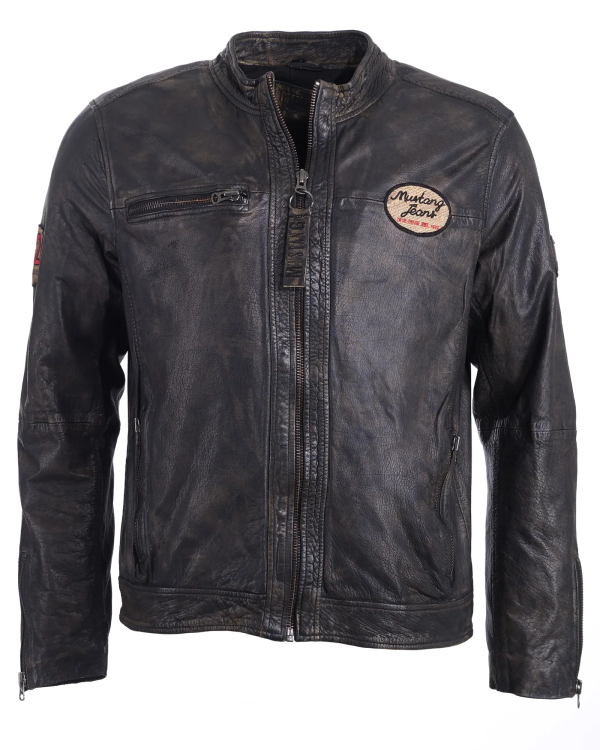 Design: Ritssluiting, Mouw rits, Staande kraag, Borstzak, Binnenzak, Ritszakken aan de zijkant; Type sluiting: Ritssluiting; Type jas: Bikerjack; Voering: Licht gevoerd; Materiaal: Leer; Motief: Effen; Extra's: Applicaties, Label patch/label flag, Used-look, Label preegdruk; Pasvorm: Normale pasvorm