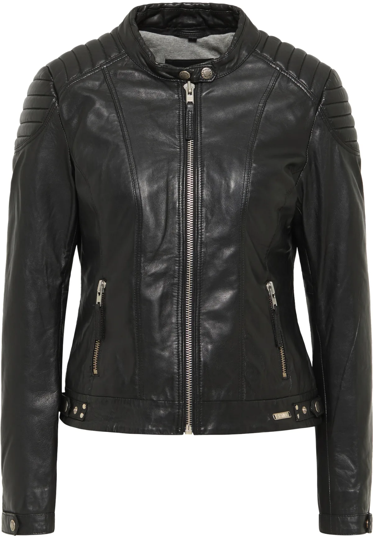 Design: Ritssluiting, Staande kraag, Getailleerd model, Ritszakken aan de zijkant; Type jas: Bikerjack; Voering: Licht gevoerd; Materiaal: Leer; Motief: Effen; Extra's: Stiksels, Lamsleer; Pasvorm: Slanke pasvorm