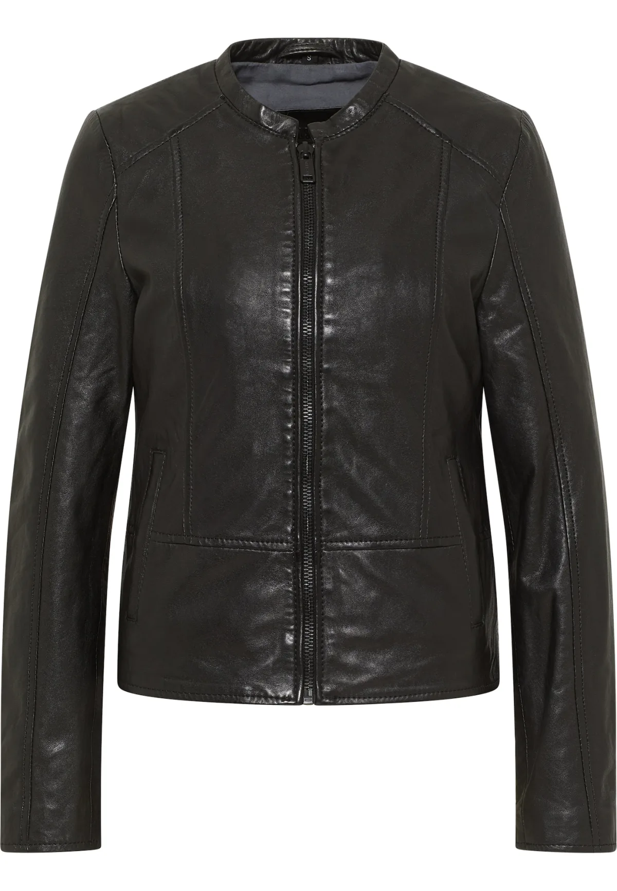 Design: Rechte zoom; Type jas: Bikerjack; Voering: Niet gevoerd; Materiaal: Leer; Motief: Effen; Extra's: Gladde stof; Pasvorm: Normale pasvorm