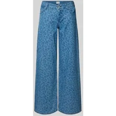 dames jeans van Mustang;puur katoen;Wide fit;Model 'Medley';all-over dierenprint;5-pocketmodel;Knoop- en ritssluiting;bandwijdte bij maat 27/32: 39 cm;Binnenbeenlengte bij maat 27/32: 81 cm