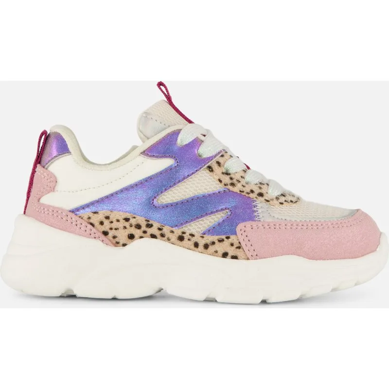 Trendy sneakers voor meisjes van Muyters, uitgevoerd in blauw leer met opvallende leopardprint. Dankzij de combinatie van veters en rits zijn ze eenvoudig aan te trekken en zitten ze altijd goed, perfect voor actieve dagen.